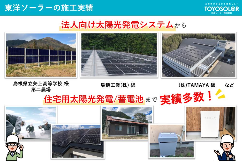 東洋ソーラーなら、販売~施工~点検まで全工程を自社で一貫管理。地元の企業だからこそできる、安心のサポート体制を構築しています。設置後10年、20年先も、電気を自給自足する暮らしをしっかりとサポートします。